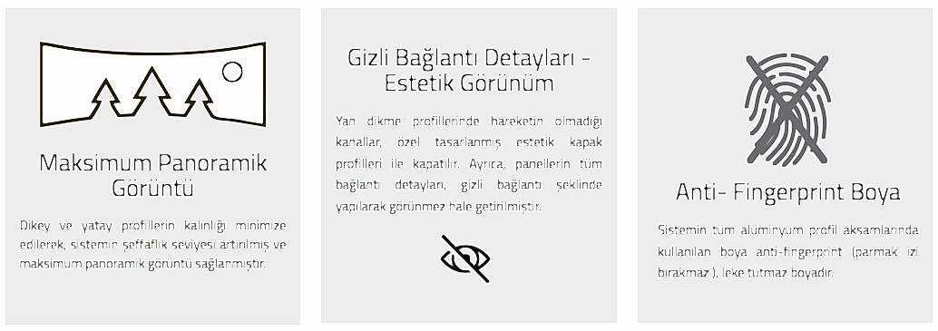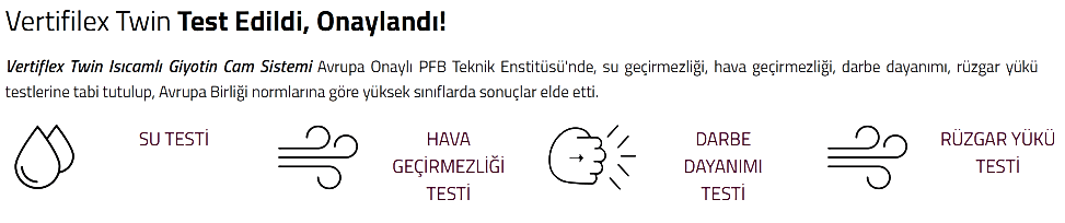Otomatik giyotin cam sistemlerinde, el-parmak sıkışmasını önleyen emniyet sistemi gibi patentli birçok yenilik sadece Vertiflex’de bulunmaktadır. Sistem, 8 mm – 10 mm veya ısıcam’lı olarak yapılabilmekte ve giyotin camlarda ulaşılabilen en yüksek yalıtıma ulaşmak için, kendine has, çözümler sunmaktadır.