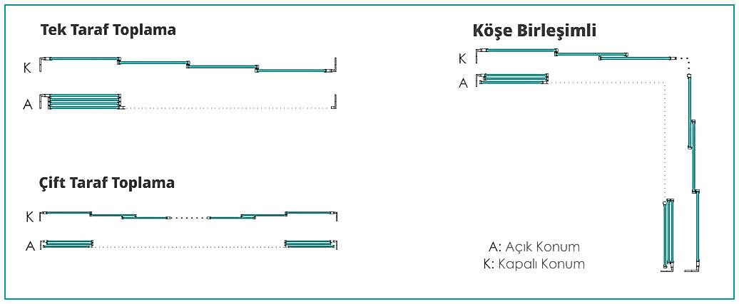 - Üzerinde yer alan özel raylı rulmanlar sayesinde balkon, kış bahçesi, kafe ve restoran gibi birçok alanda kolay bir kullanım sağlayabilmektedir.